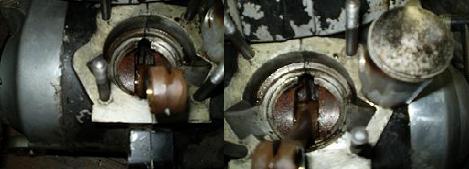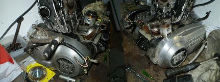 En la foto estamos viendo el bloque motor, parte del cigüeñal, el pistón y la biela. No tiene holgura, los cojinetes y retenes se encuentran en perfecto estado, cosa curiosa para una moto de su edad, será necesario sustituirlos una vez abierto el motor, ya que esto evitará problemas a corto plazo.